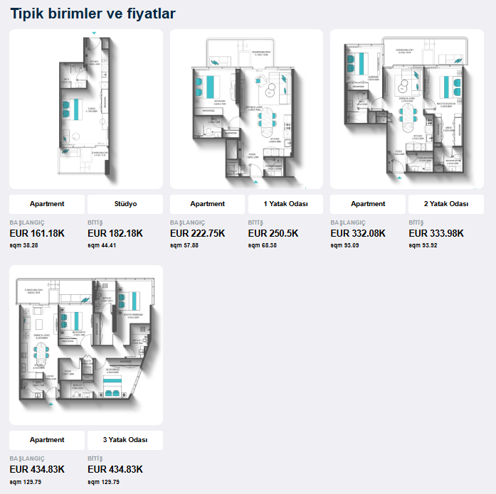 🏠 Daire Tipleri & Fiyat Bilgisi
