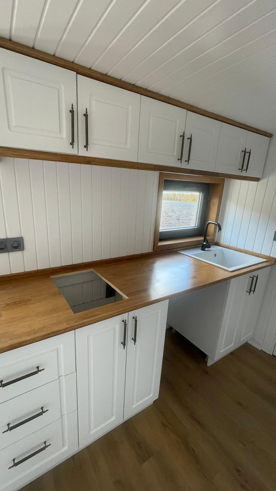 • Mutfak & Depolama: MDFLAM dolaplar, 20 mm çam masif panel tezgâh (tick yağı uygulamalı)